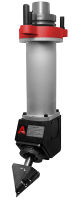 Das Aggregat, das sowohl für 4-Achsmaschinen als auch für 5-Achsmaschinen geeignet ist, zeichnet sich durch einen robusten Aggregatekörper mit einem hohen und massiven Stahlgehäuse aus. Abhängig von den Maßen des eingesetzten Ausspitzfräsers ermöglicht es einen Ausspitzvorgang für Bearbeitungstiefen bis zu 400 mm auf kleinsten Raum von 200 x 200 mm. Die mechanischen Komponenten wurden sorgfältig gewählt, um einen zuverlässigen Dauereinsatz zu gewährleisten. Die kompakte und schlanke Bauweise minimiert Störgrößen, während der Werkzeugausgang von 45° die Werkzeugaufnahme mittels einer ER32-Spannzange ermöglicht. Die Maschinenanbindung erfolgt über verschiedene Schnittstellen, wobei die modulare Drehmomentstütze zur Verdrehabsicherung beiträgt.